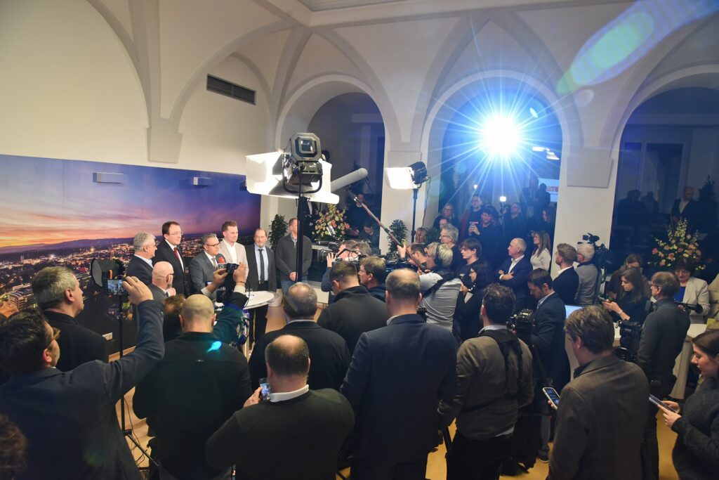 Die Begrüßung der Gäste im bis auf den letzten Platz gefüllten Saal übernahmen der Hausherr AKNÖ-Präsident Markus Wieser, der mit eindrücklichen Worten vor den Gefahren für die Arbeiterschaft durch KI und Robotik warnte, und der St. Pöltener Bürgermeister Matthias Stadler, der natürlich die unmittelbar bevorstehende Gemeinderatswahl in der Landeshauptstadt thematisierte.